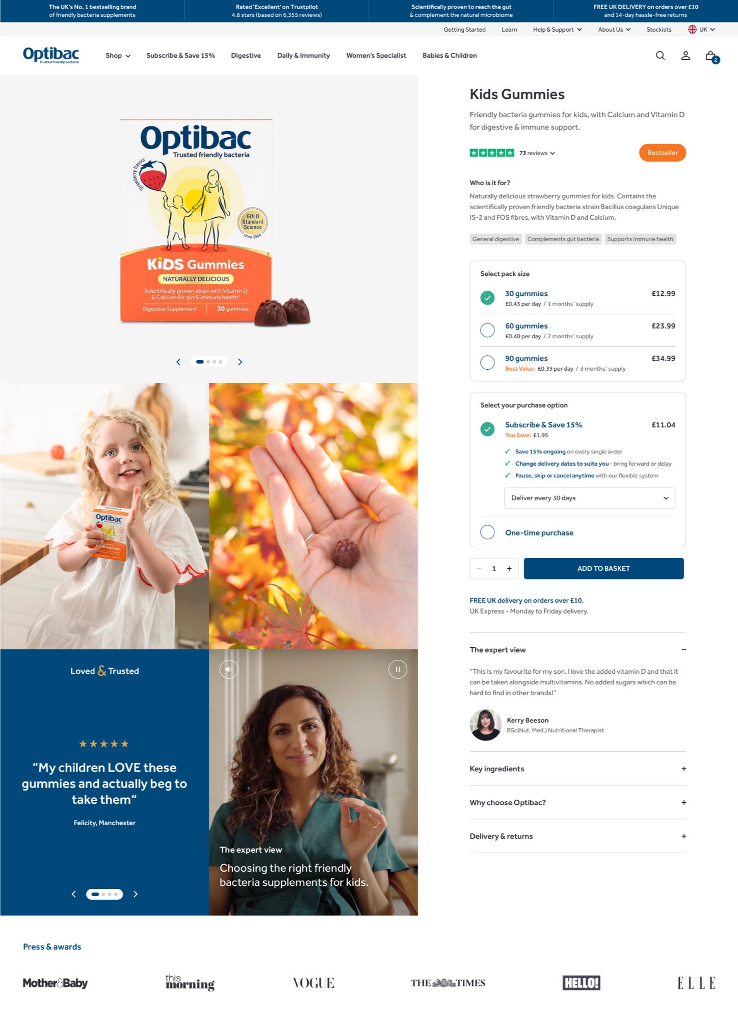Optibac’s digital estate had grown organically, resulting in multiple sites and disjointed user experiences between transacting and non-transactional territories. The challenge lay in consolidating these experiences without losing local nuance or regulatory compliance, particularly in the UK, where strict product communication standards required sensitive management. The transition was further complicated by an established subscription base and a change in payment providers, making customer retention a key consideration throughout the process.
